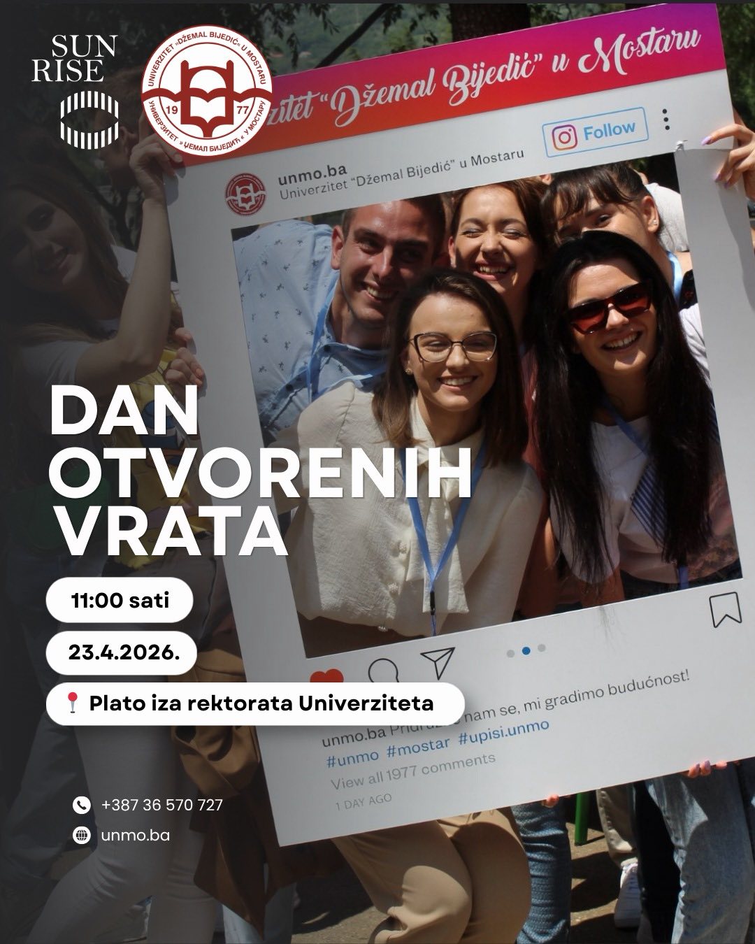 Dan otvorenih vrata na Univerzitetu “Džemal Bijedić” u Mostaru održat će se u četvrtak, 23.04.2026.godine sa početkom u 11 sati.